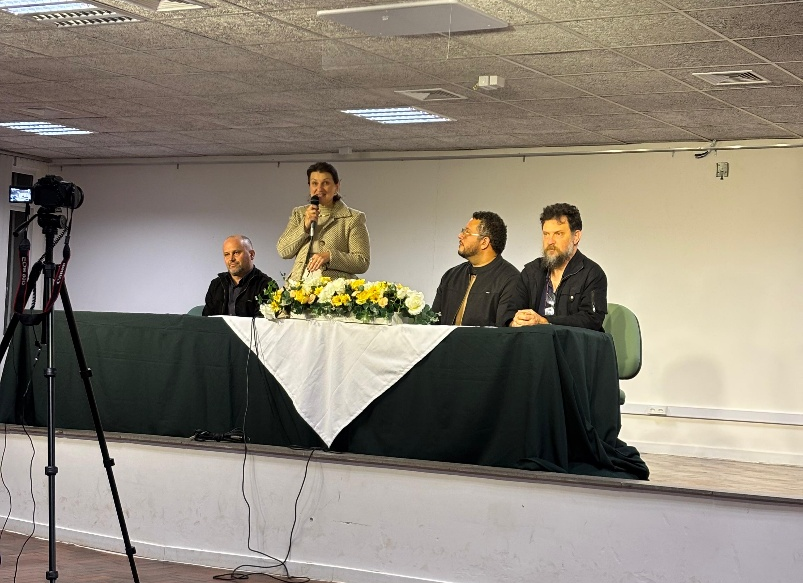 A mesa contou com o atual coordenador, Prof. Dr. Gerson Wasen Fraga, com os Profs. Drs. Reginaldo José de Souza, Fábio Feltin e Jerzy Brzozowski, e com as Profªs. Dras. Adriana Richit, Adriana Salete Loss e Zoraia Aguiar Bittencourt. Foi um espaço de celebração da memória coletiva de construção e consolidação do programa em nosso campus.