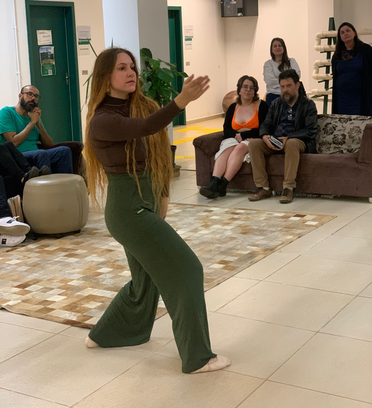 Apresentação de dança da mestranda Jaqueline Molossi antes de mesa de encerramento do evento.
