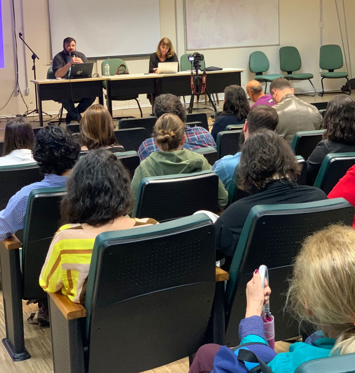 Momentos de apresentações de trabalhos e roda de conversa envolvendo discentes e docentes.