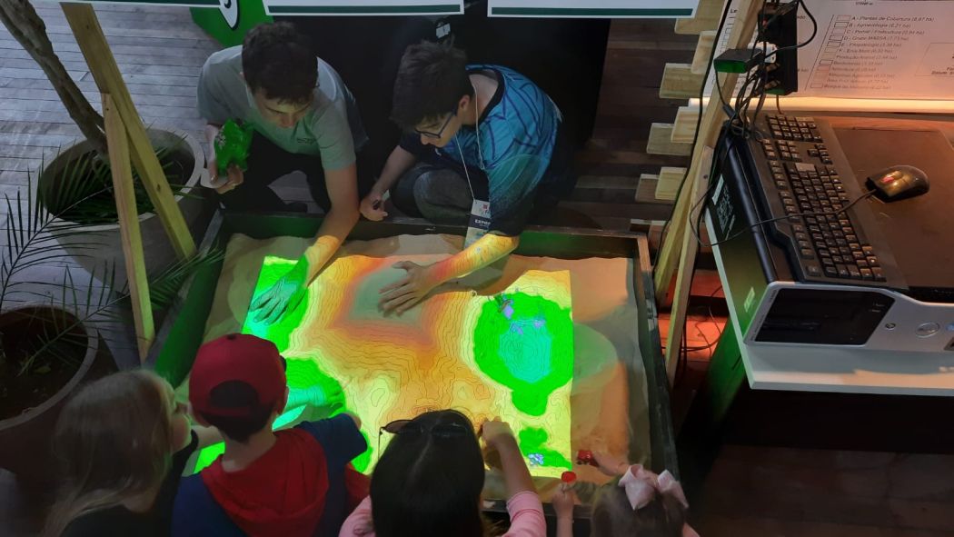 As escolas da região estão levando seus alunos para os espaços da feira. No estande da UFFS, elas se divertem com a caixa de areia que simula uma realidade aumentada, projetando formas de terreno em tempo real. Há também materiais da Brinquedoteca e o espaço da “Foto do Futuro”, onde os visitantes podem tirar uma foto simulando estarem em uma solenidade de formatura. A Instituição também apresenta um estereoscópio, objeto que possibilita a visão tridimensional a partir da utilização de um par de fotografias. São utilizadas imagens feitas com drone, possibilitando visualizar alguns locais do Campus em uma visão 3D.