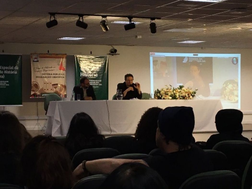 As atividades iniciaram na noite do dia 3 de outubro com a conferência de abertura “Os lugares da historiografia no debate público brasileiro: experiências e possibilidades em tempos de negacionismo”, que teve a presença dos professores André Freixo (UFOP), Bruno Picoli (UFFS – Campus Chapecó e membro do Grupo de Trabalho do Programa de Pós-Graduação em História Pública da UFFS) e Samuel Radaelli (IFPR – Campus Palmas). A atividade foi transmitida pelo YouTube e está disponível em https://youtu.be/veyHMyvAY9Q. Houve também o lançamento do livro “Direcionário: o dicionário reacionário – a redefinição semântica do mundo segundo os apetites conservadores”, de Samuel Radaelli.