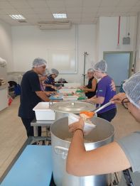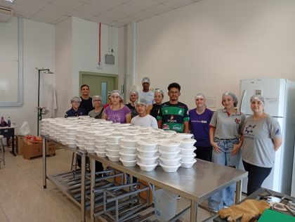 Outra frente importante foi o apoio à cozinha comunitária instalada no Assentamento 8 de Junho, responsável pelo preparo de marmitas destinadas às famílias atingidas e aos voluntários. A UFFS também colaborou nas ações desenvolvidas na Casa de Líderes, em Laranjeiras do Sul, que acolheu famílias desabrigadas e também funcionou como espaço para preparo de refeições.